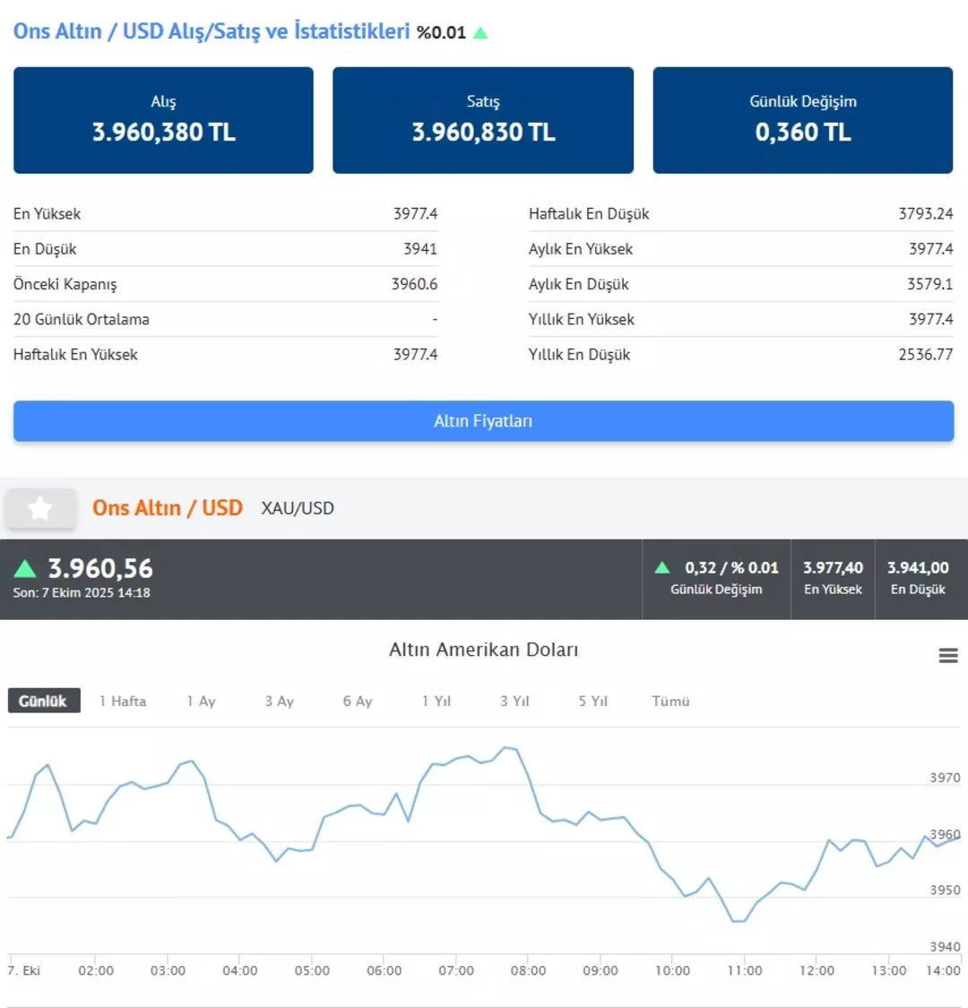 Finans ve piyasa uzmanlarının sert düşüş uyarısına rağmen, altın fiyatları 7 Ekim 2025 Salı günü itibarıyla tarihi zirvelerde seyretmeye devam ediyor.