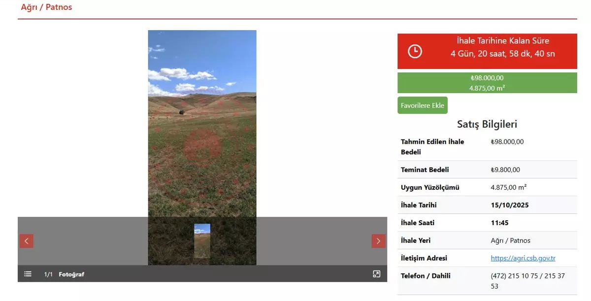 İhale Tarihi ve Saati: 15 Ekim 2025, Saat: 11:45