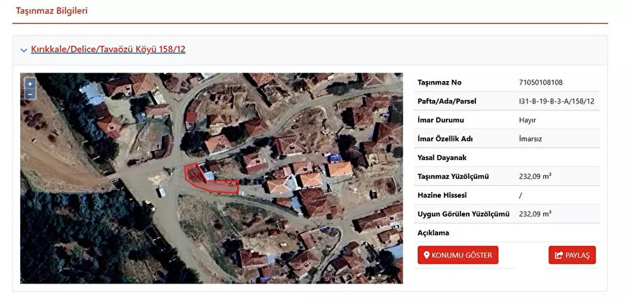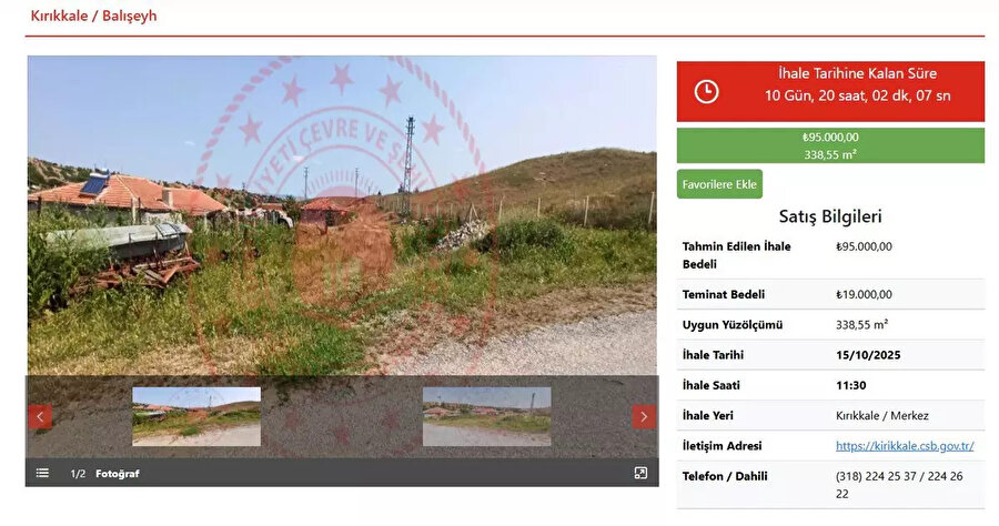 Milli Emlak, satışa çıkarılacak taşınmazlardan birine ait detayları da paylaştı. Bu örnek, ihaleye katılmak isteyenlere hem süreç hem de fiyatlar hakkında somut bir fikir veriyor: