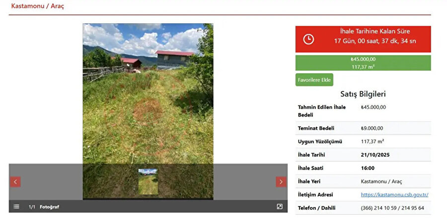 Bu tabloya göre, Kastamonu’nun Araç ilçesinde yer alan ve yüzölçümü 117,37 metrekare olan bir arsa, sadece 45.000 TL başlangıç bedeliyle satışa sunuluyor. İhaleye katılmak isteyenlerin ise 9.000 TL teminat yatırması gerekiyor.